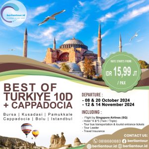 Hari 10: ISTANBULSIN (06.50) -CGK (07.35) by SQ950Kita akan Kembali melanjutkan perjalanan ke Jakarta, dan sampai jumpa di tour selanjutnya bersama kami.